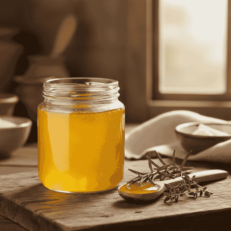Transform unsalted butter into golden, nutty ghee through a gentle simmering process. This clarified butter is shelf-stable and perfect for high-heat cooking and baking.